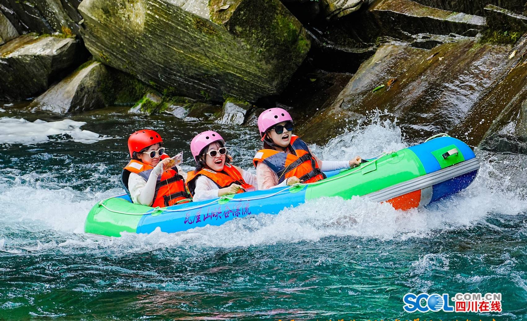 游客在瓦屋山峡谷体验漂流。(洪雅县文广旅局供图)