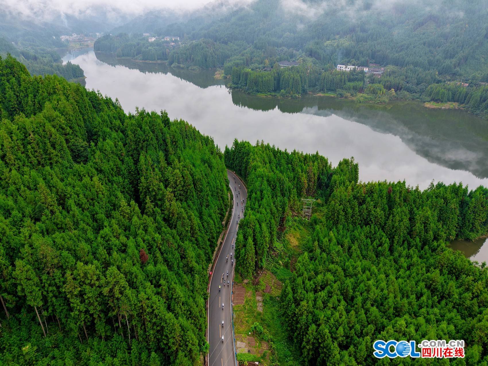 骑行队伍穿梭在雅女湖碧波与青山绿林构成的“天然画廊”中,沉浸式穿越森林、途经峡谷、临湖而行。“湖边赛道特色鲜明,风景绝美,选手表现精彩,观众看得过瘾。”来自成都的游客李坤一边用手机记录比赛,一边兴奋地说。