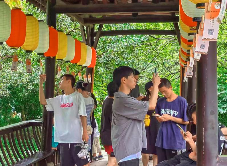 三苏祠的红墙一直被评为“必拍机位”。这个假期,三苏祠在红墙设置了打卡点位,让游客直接走进“东坡诗词”,美出朋友圈。