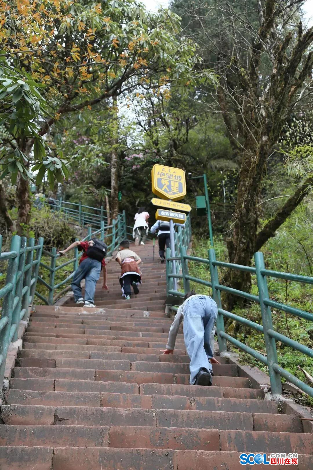 丹棱县的老峨山集齐五福兑换的“终极奖牌”也让游客拼了,有网友分享:“打顺风车赶去,一小时完成从售票厅到舍身崖的往返,就为赶在接孩子放学前拿到‘王炸’奖牌。”