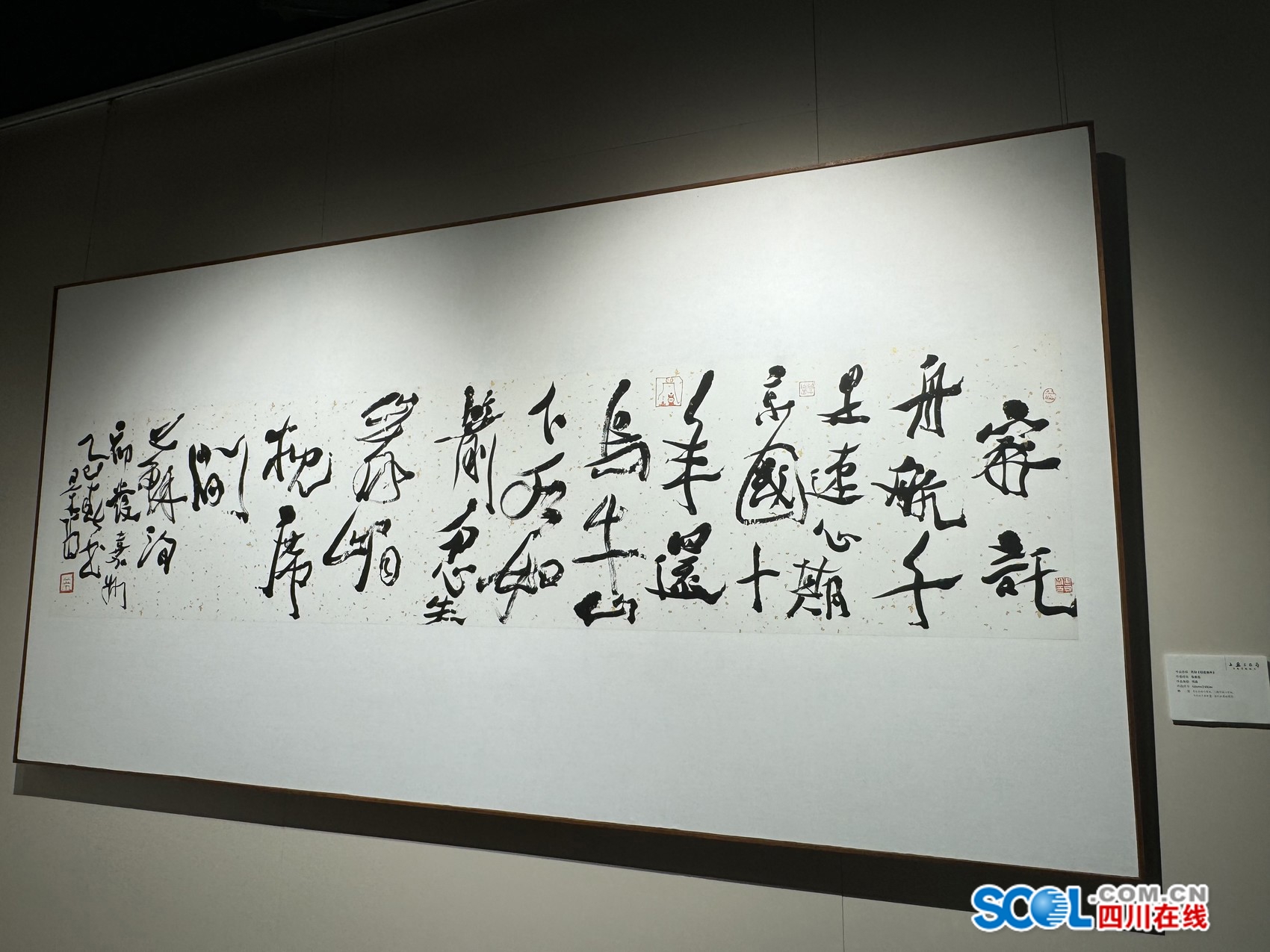 展览以三苏出蜀的陆路和水路为基础,将巴蜀地区各三苏遗迹遗址串联成线,汇聚了国内82名艺术家的主题书画精品,通过“眉州记忆:我家江水初发源”“三苏出蜀:梦寻归路蜀山长”“蜀地百朋:谁言万里出无友”“诗助江山:至今瓣香长不断”四个章节,从三苏的眉山记忆、巴蜀诗文、巴蜀交游、千年嗣响四个角度,呈现三苏文化与巴蜀文化持续近千年的互动与对话。