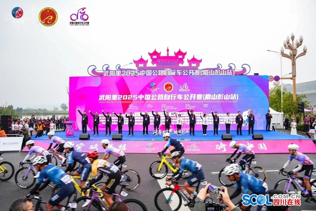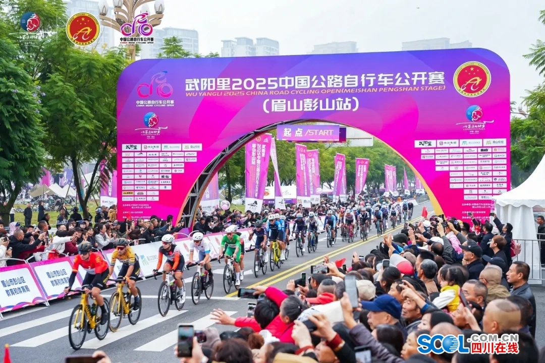 四川在线消息(眉山频道 曾永丽)11月2日,武阳里2025中国公路自行车公开赛(眉山彭山站)鸣笛开赛。作为本年度全国五站赛事的收官之战,本站吸引了1500名参赛选手齐聚于此,在速度与激情中全方位领略“长寿之乡”与“沉银宝地”的独特魅力。