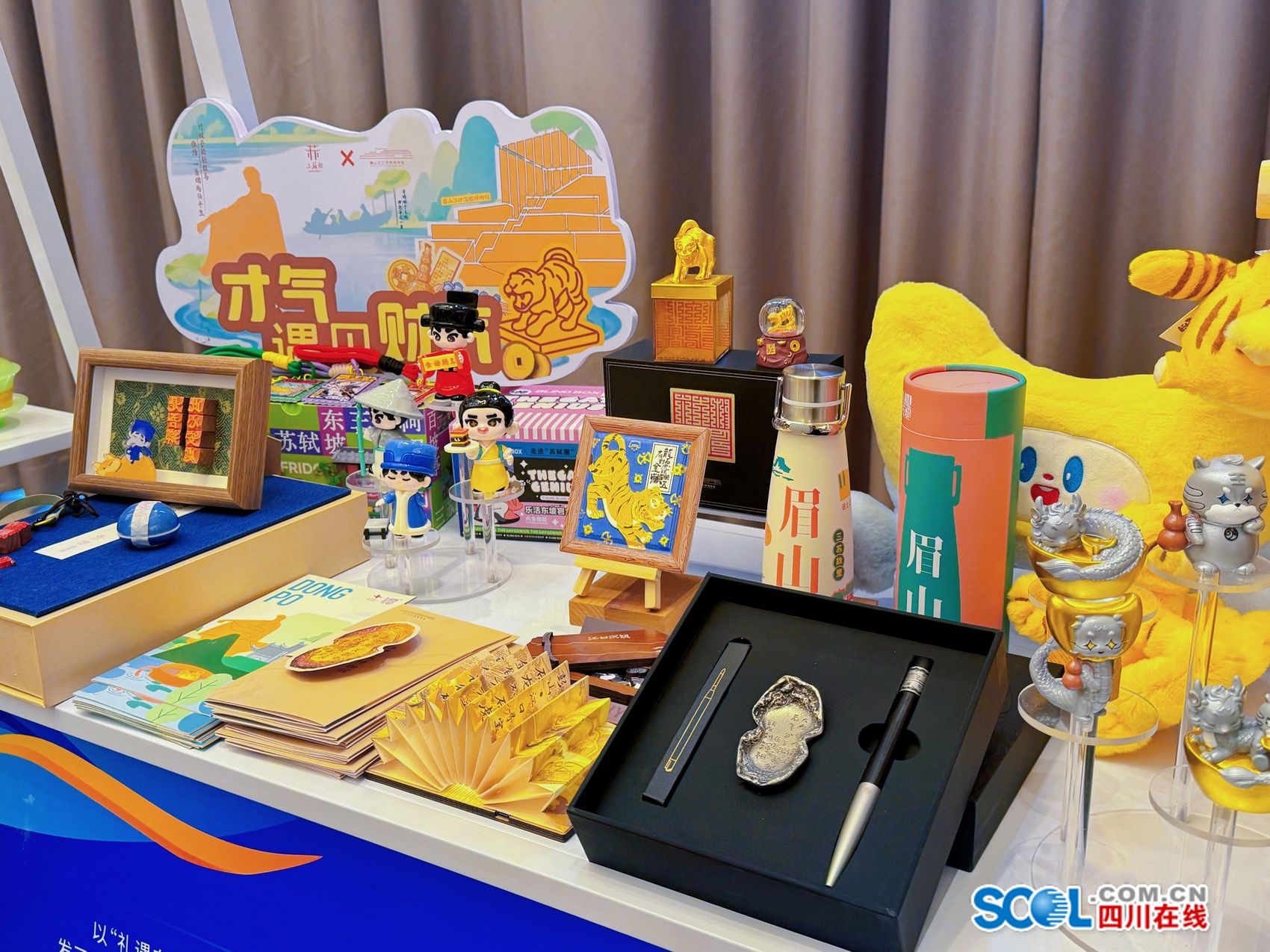 活动现场,眉山展区以“礼遇东坡”的才气与“江口沉银”的财气形成独特组合,凭借深厚的文化底蕴与丰富的产品矩阵,吸引众多企业代表驻足洽谈,气氛热烈。