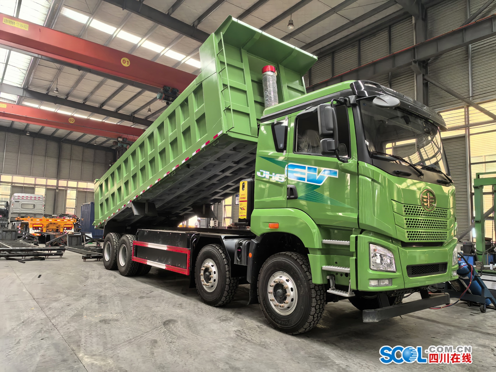 同样处于满负荷生产的还有四川川运重工机械有限公司(以下称“川运重工”)。生产车间内,100余名工人正对钢材进行剪裁、折弯、冲压、焊接、喷漆和装配等工序,一辆新能源工程半挂自卸车的大梁在协作中逐步成型。车间外,几十台新能源半挂自卸车正进行出厂前检测,即将发往省内成都、宜宾、泸州等地。