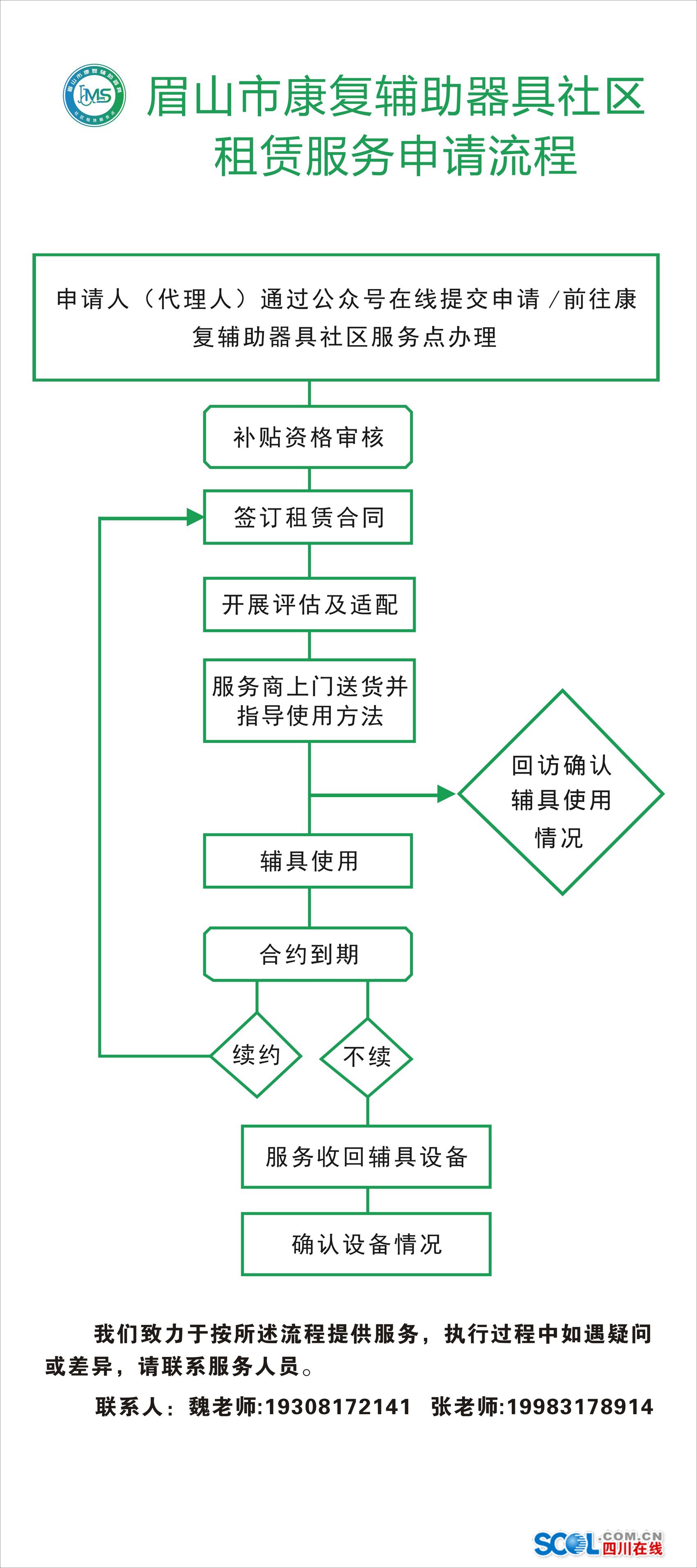 有需求的居民(代理人)可直接到服务站点申请,或通过公众号在线提交申请;对于行动不便者,还能电话联系工作人员上门代办。申请后,经民政局补贴资格审核、签订租赁合同,专业租赁服务机构工作人员会为申请人提供一对一需求评估,在《眉山市康复辅助器具社区租赁服务产品目录》中推荐最合适的辅具,并提供配送、安装、使用指导、维修保养、回收消毒全链条服务,彻底打消居民“不会用”“坏了怎么办”的顾虑。