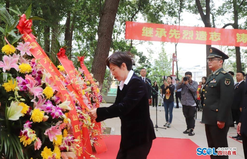 巍巍青山,见证了革命先烈的英雄壮举;苍苍松柏,寄托着党和人民的无限哀思。在现场,265名各界人士整齐列队肃立。方阵前,彭山区委、区人大、区政府、区政协、驻彭解放军和武警部队等代表分别敬献的5个花篮一字整齐排开。花篮红色缎带上书写的“烈士永垂不朽”几个字格外醒目。