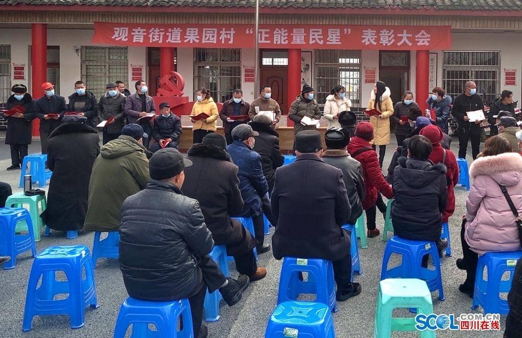 四川在线消息(刘树军 眉山频道 谭笑非)1月26日,眉山市彭山区观音街道果园村党委,集中表彰一批正能量明星,旨在培塑乡风文明典型,有效传递正能量,进一步为文明新村建设注入新活力。