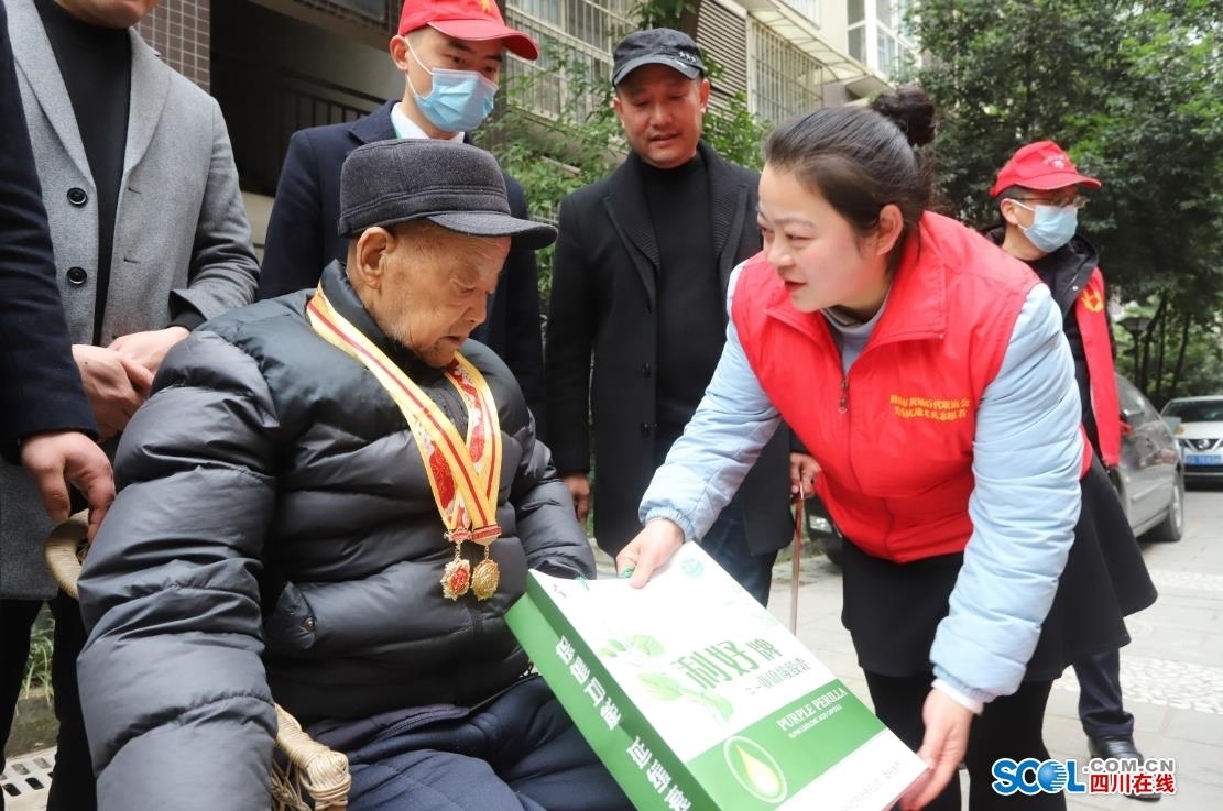 活动中,志愿者们先后前往彭山区凤鸣街道、观音街道和锦江镇,对曾经参加过抗日战争、解放战争和抗美援朝战争的共产党员、老复员军人、104岁老人赵步云等5名老战士和彭山区锦江镇天库村身残志坚、靠手工制品增收致富的村民冯双平进行了慰问,分别为他们赠送了大米、食用油、春节大礼包、春联和慰问金等。