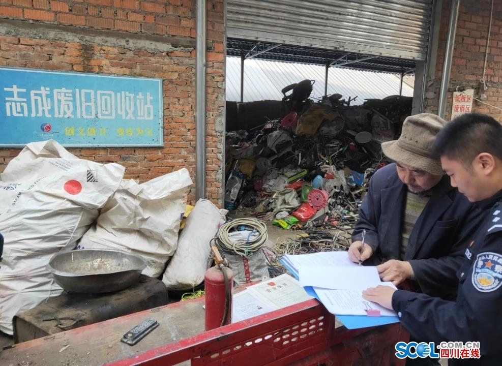 四川在线消息(张韵)为切实加强废旧物品收购行业的规范化管理,从源头上断绝销赃渠道,全面挤压违法犯罪空间。3月9日,彭山区公安分局观音派出所对辖区废旧物品收购站点进行全面检查整顿。