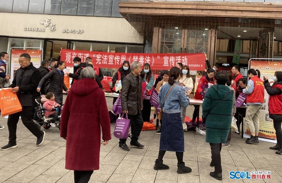 四川在线消息(饶城陈 刘树军)3月11日,眉山市彭山区观音街道在彭山城区伟业广场,组织开展“宪法宣传周《禁毒法》宣传活动”,旨在贯彻落实省、市禁毒工作精神,加大群众禁毒宣传教育力度,提高广大群众识毒、辨毒、查毒能力,充分调动广大群众参与禁毒工作的积极性,最大化地构建禁毒斗争的新格局。观音街道禁毒社工、综合治理办、司法所、妇联、蔡山社区网格员等相关部门和单位的负责人与工作人员参加活动。