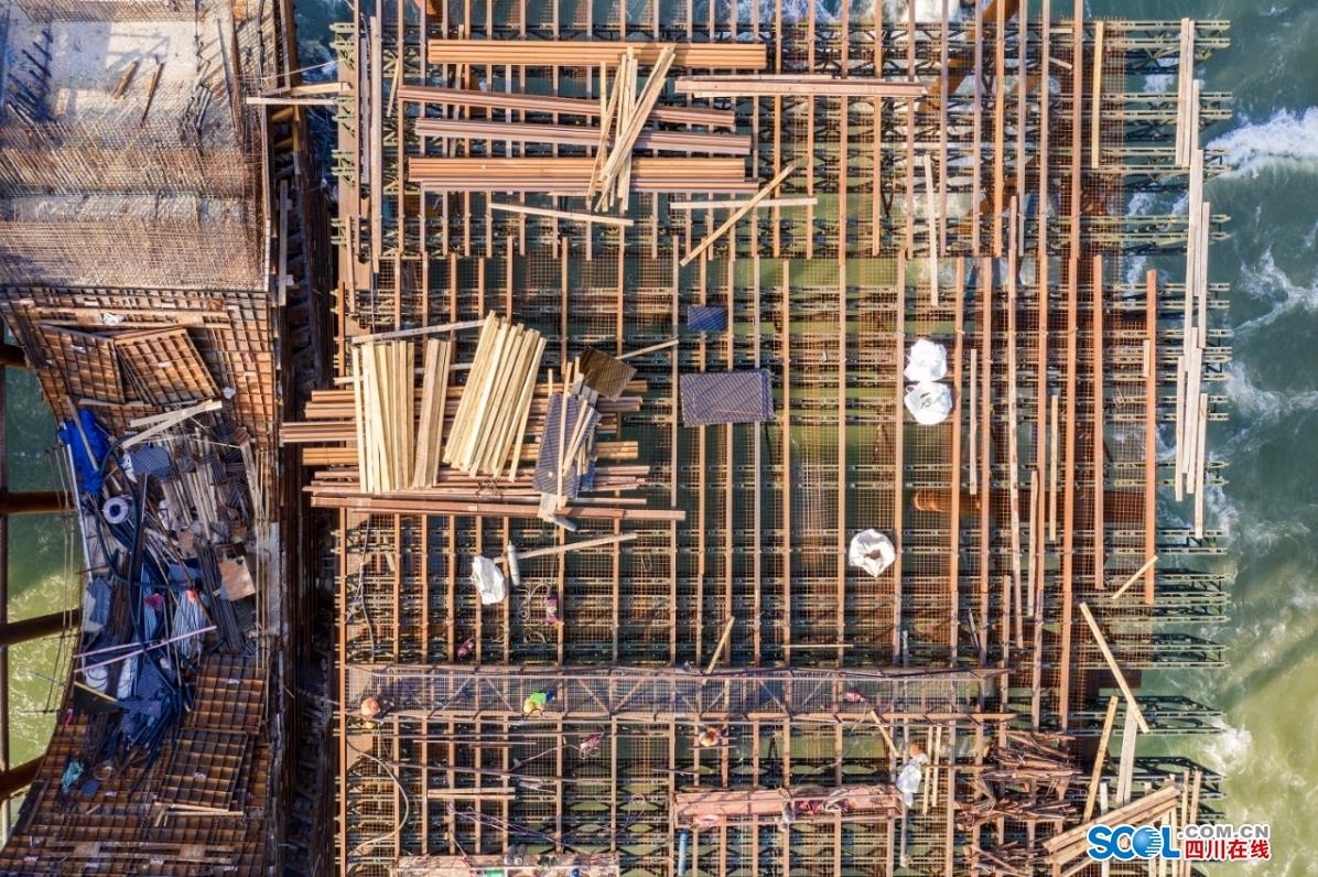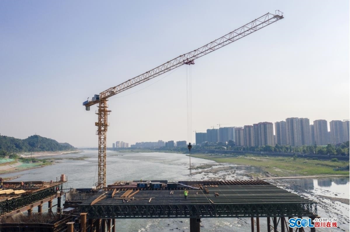 岷江大桥东西两侧与迎宾大道、滨江大道、环湖东路衔接部分建设正在有序配套打造,预计2021年底全面完成梁体工程。