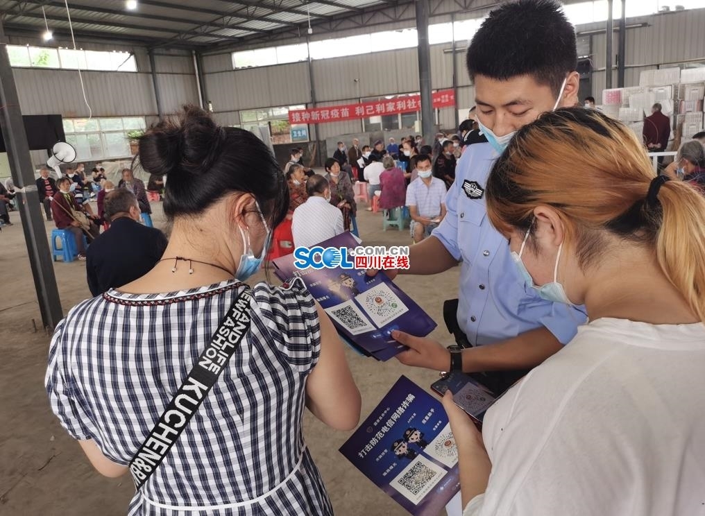 四川在线消息(曾敏眉山频道谭笑非)为防范和减少电信诈骗案件的发生,进一步提高群众的安全防范意识,8月30日,彭山区公安分局公义派出所充分利用民警到新冠疫苗接种点执勤的便利,组织开展防范电信网络诈骗宣传活动,向接种疫苗的群众推广“国家反诈中心”APP,筑牢防范电信网络诈骗“防火墙”。