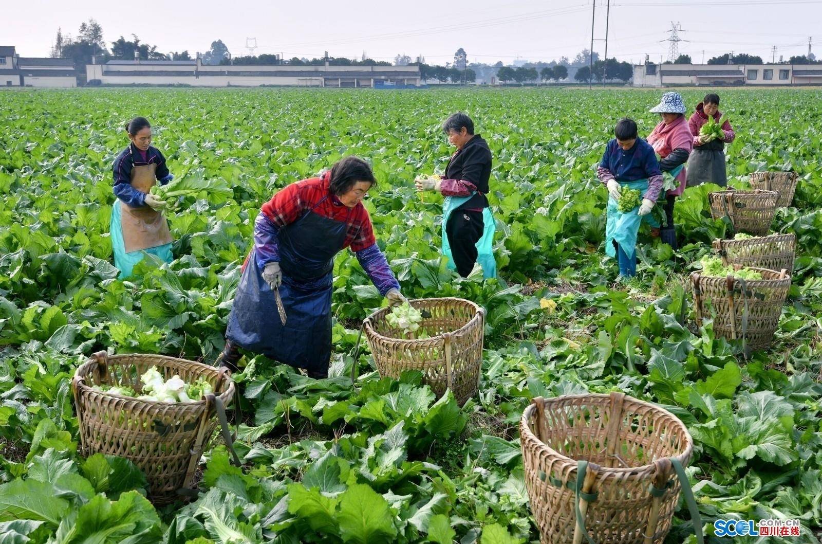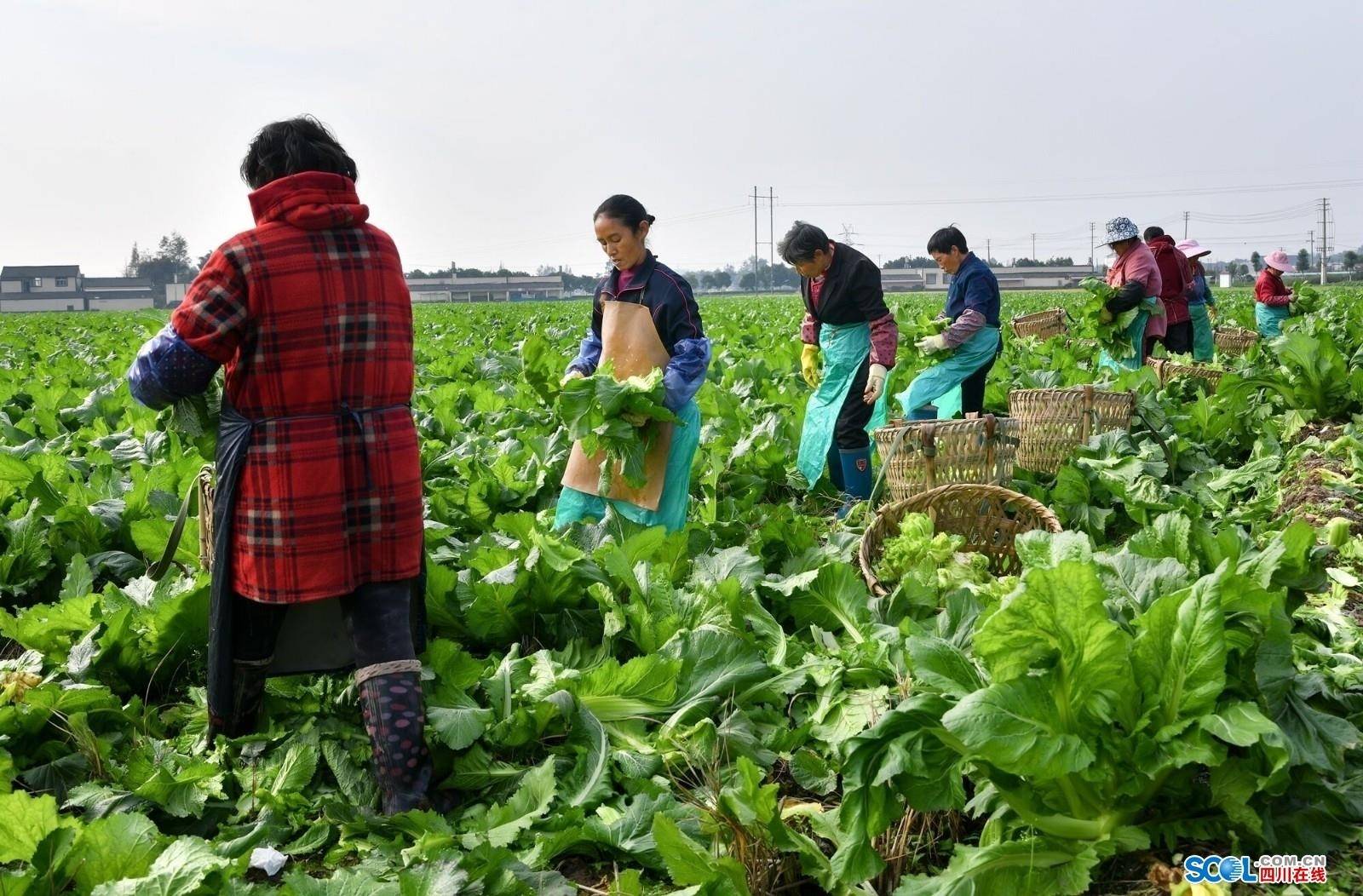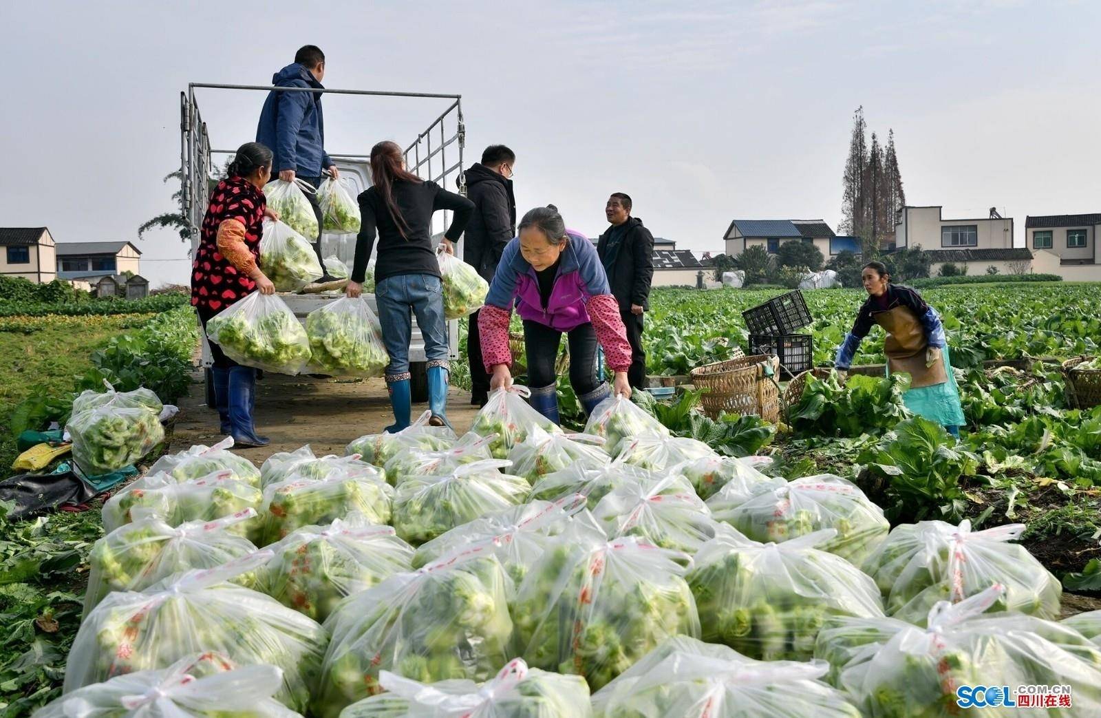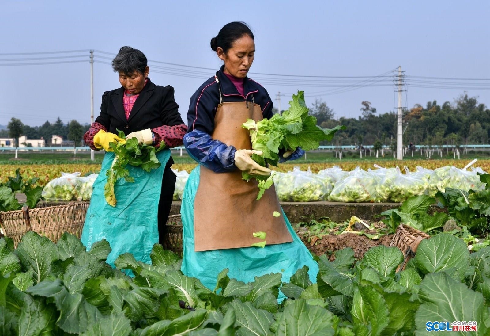四川在线消息(温选鹏 眉山频道 谭笑非)12月20日,在眉山市彭山区公义镇欣荣村青菜种植基地,绿油油的青菜已经进入收割期,到处是菜农们忙碌的身影,村民们正在忙着将采收的青菜进行分拣、打包、称重、装车,呈现一片繁忙的景象。