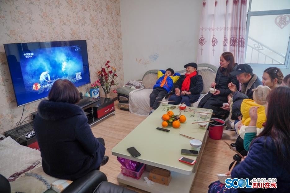 今年的元宵节对张绍清老人一家来说有点特别。当天早上,央视社会与法频道《夕阳红》栏目《寿宴》,正好播出张绍清老人的专题节目《百岁任逍遥》,向全国讲述老人的长寿故事。一家人围坐在一起,吃汤圆、看节目,其乐融融。