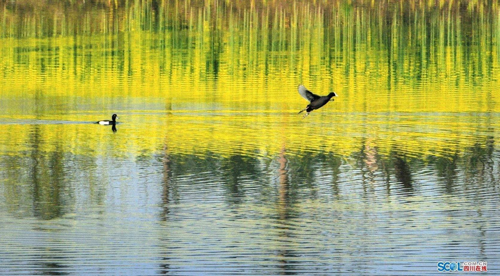 骨顶鸡出现在岷江河畔,呈现出一幅城市与野生鸟类和谐共生的生态之美,这也得益于彭山区大力实施的碧水攻坚战。近年来,区全面落实河(湖)长制,10条流域每年按目标、任务、问题、责任四项清单和清河、护岸、净水、保水行动方案,扎实推进综合治理。彭山“河畅、水清、岸绿、景美、宜居”的美好生态正在逐步实现。
