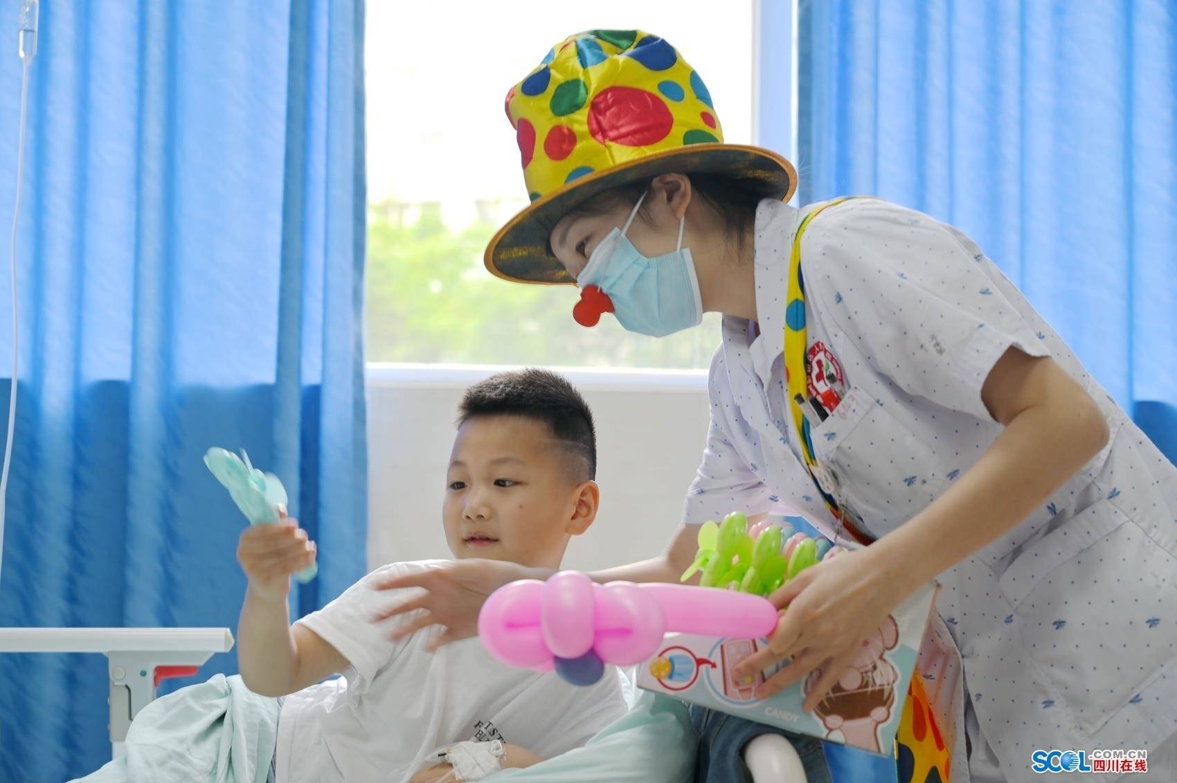 四川在线消息(干翔 吴雨谣 眉山频道 谭笑非)六月的歌声最甜,六月的孩子们最快乐。在“六一”儿童节这个属于小朋友的节日里,5月31日,眉山市彭山区一医院儿科组织了一场“小丑医生进病房”活动,为他们送去快乐和礼物。