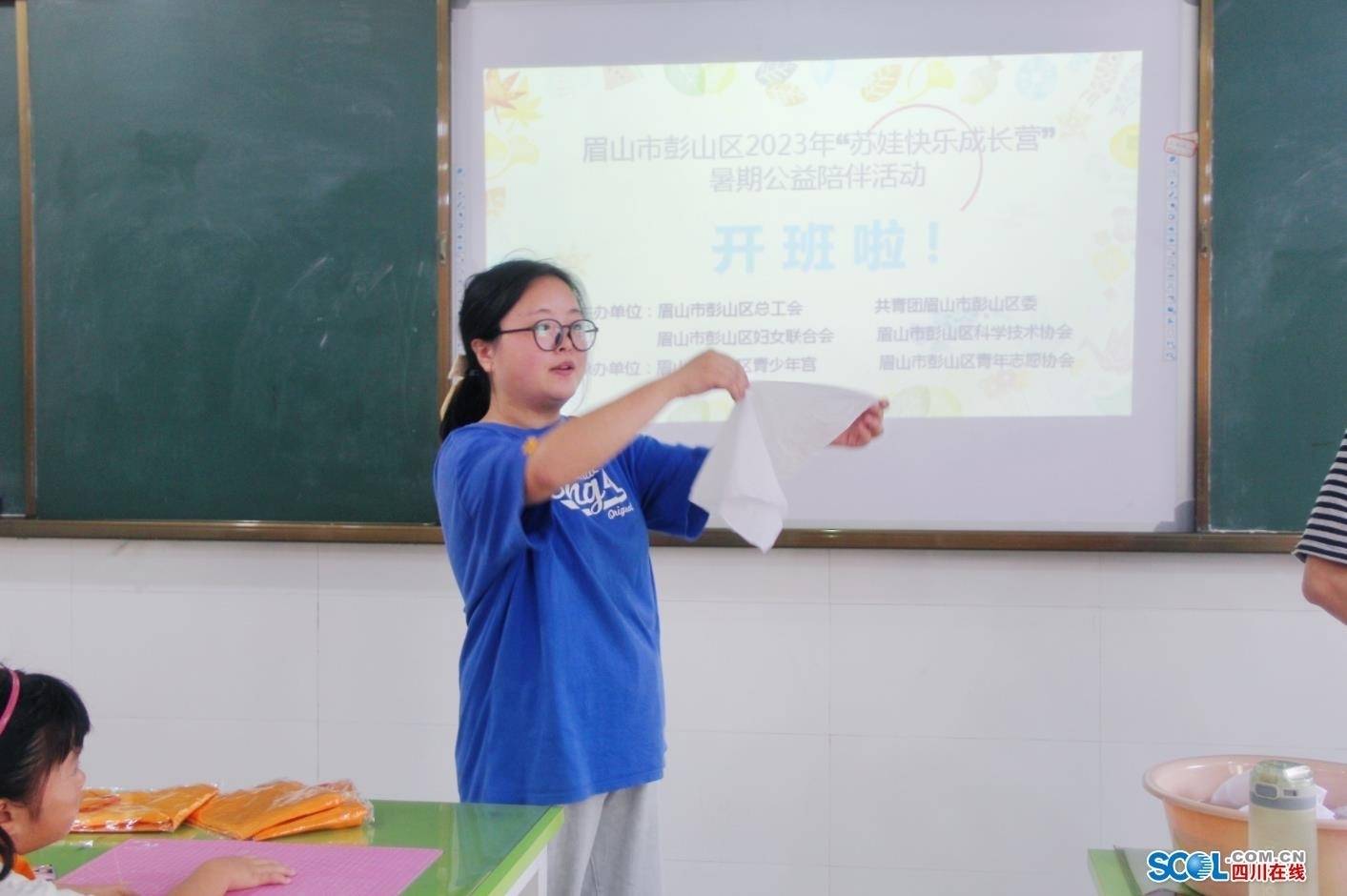 四川在线消息(翁光建 眉山频道 谭笑非)为切实帮助眉山市彭山区职工解决子女暑期“看护难”问题,满足职工托育服务需求,实现“上好班”与“看好娃”完美结合,7月31日,由眉山市彭山区总工会、团委、妇联、科协等部门共同打造的2023年“苏娃快乐成长营”暑假公益托管班在该区青少年宫正式开班。