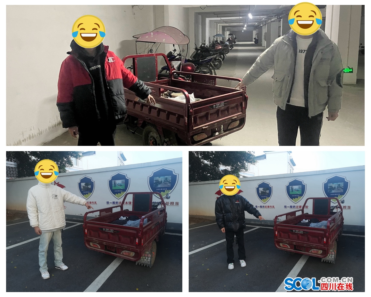 经审讯,嫌疑人曹某某和徐某某有前科,曾被公安机关打击过。前不久,4人相约想盗窃电动车卖钱,便流窜至黄丰镇上,盯上了李某某副食店外的电动三轮车。因当时门口来往人群较多,4人就轮流在附近蹲守,直到凌晨2点趁人不备把车盗走。原本想等白天找地方将车卖掉,怎料被彭山公安民警发现。