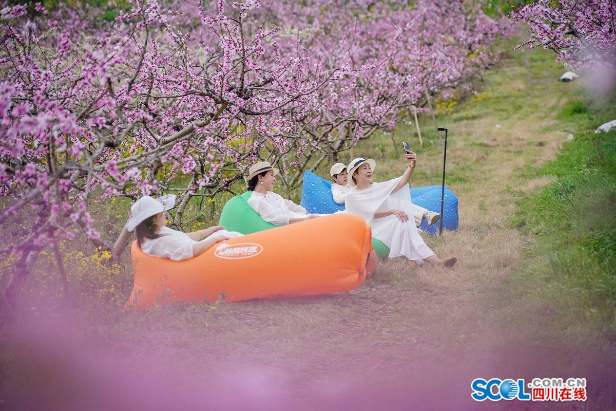 四川在线消息(马诗雨 翁光建 眉山频道 谭笑非)桃花春色暖先开,明媚谁人不看来。近段时间,眉山市彭山区凤鸣街道江渔村的上百亩桃花陆续盛开,只见点点的粉色点缀在枝头,粉嫩娇艳的桃花或含苞待放、或向阳盛开,花香随风飘散沁人心脾,成为春日里最温润绚丽的景色。