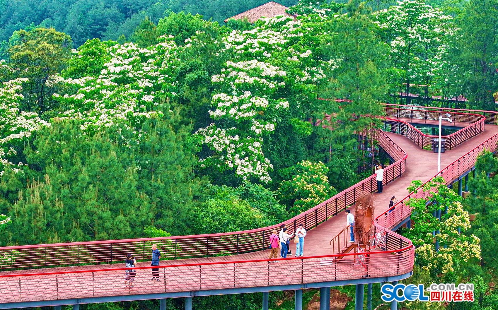 在仁寿县禾加镇五龙山的桐花谷,游客正在赏花游玩。