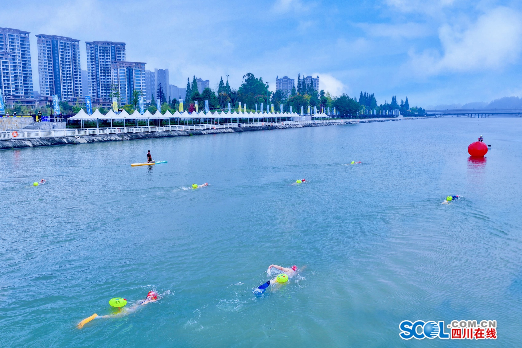 当天上午,发令枪响的瞬间,青神湖面即刻沸腾。专业运动员身着流线型泳衣跃入水中,脚蹼摆动激起的水花与“离弦之箭”般地冲刺身影,引得岸边观众欢呼不断。