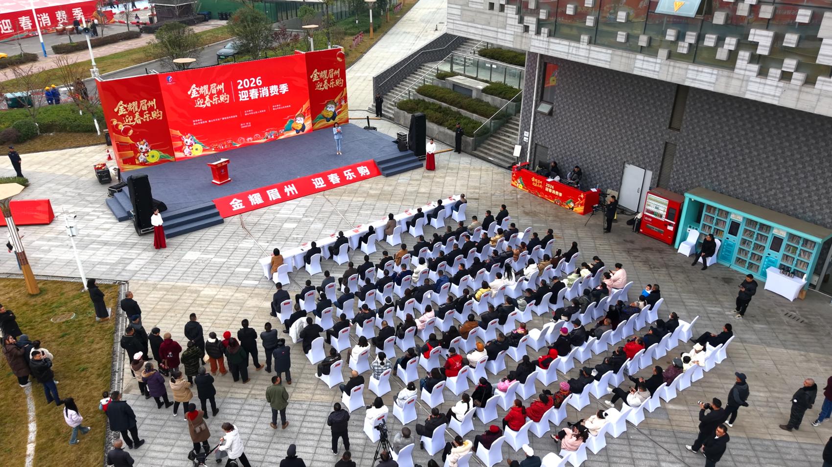 四川在线消息(眉山频道 谭笑非)12月27日,2026“金耀眉州・迎春乐购”迎春消费季启动仪式在眉山市彭山区五湖四海湿地公园旁拉开帷幕。这场覆盖全市、持续至2026年3月31日的消费盛宴,一口气带来超过100场多元活动,将在全市范围内联动20个消费新场景、1000余家市场主体,并计划投放总额2000万元的消费券,惠及广大市民和游客。