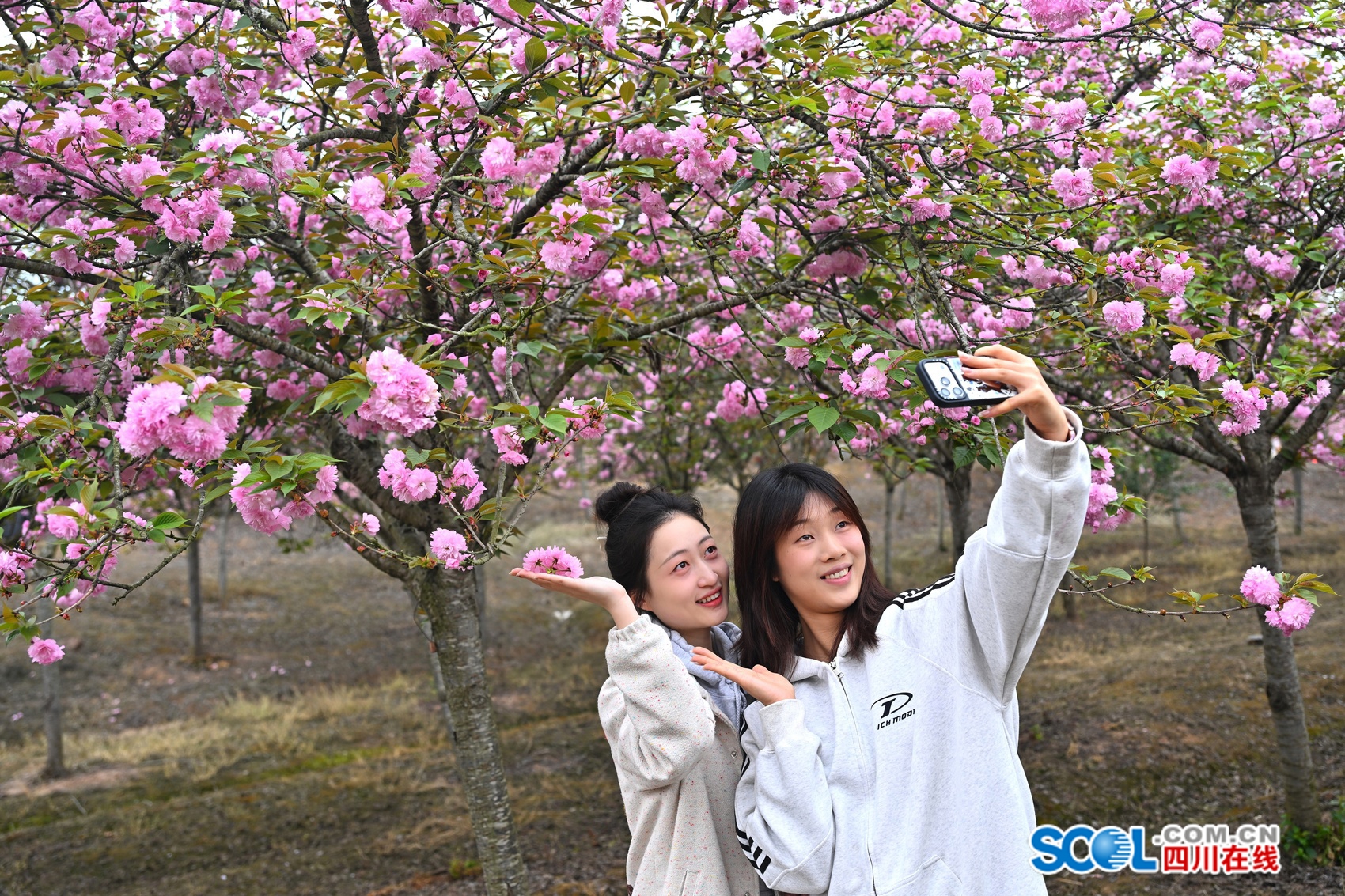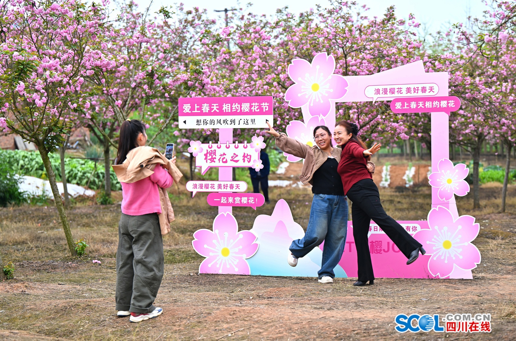 “我们始终以樱花为入口,深耕生态资源,推动文旅产业提质升级。”方家镇相关负责人介绍,该镇依托“曲水留香”景区的生态优势,高质量推进“天府粮仓”丘区示范区建设,通过拉长花期、做深樱花产业链、补全四季旅游业态、注入本土文化元素,打破“一季樱花”的局限,着力构建“春赏樱棠、夏观花楹、秋品紫薇、冬咏红梅”的四季旅游格局,让每一季都有美景可赏、有体验可玩。