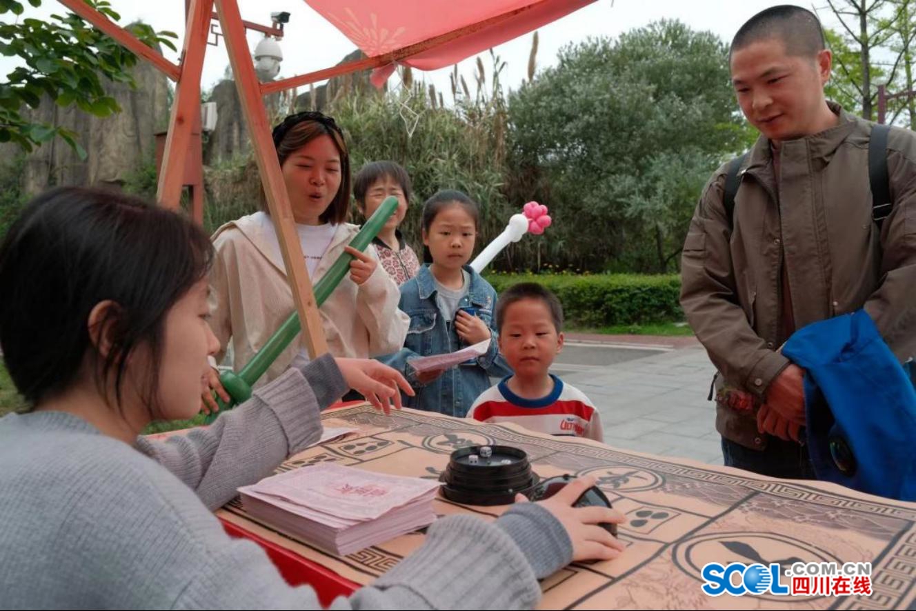 景区内处处洋溢着欢乐氛围。彭祖广场的“超级大富翁”互动区,骰子落地的声响伴着阵阵欢呼;寿山广场上,猜拳大作战、点数对决轮番上演,游客与NPC斗智斗勇,笑声不断;彭祖书院外,仙山对诗会吸引大小朋友参与,成功对诗或背诵《陈情表》的游客,手持“银票”满心欢喜;膳食术馆内,“杠上开花”摸麻将游戏,让游客在休闲中体验乐趣。