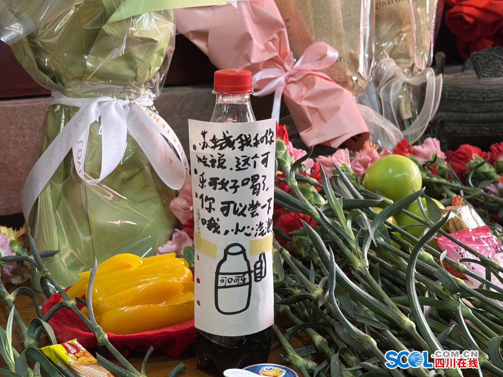 “苏迷”为苏东坡送上一瓶可乐当“寿礼”。底伊乐/摄