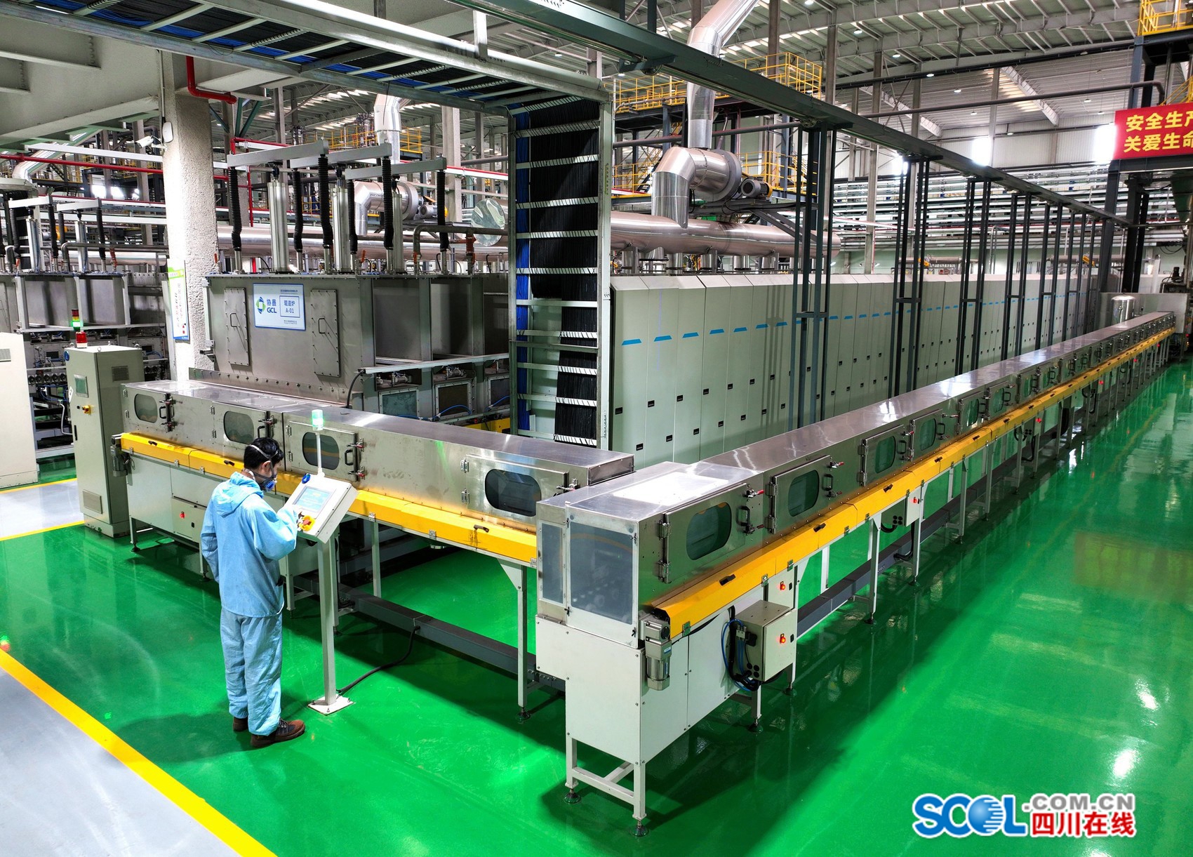 在四川协鑫锂电科技有限公司内,工人正在操作全自动生产设备。(仁寿县委宣传部供图)