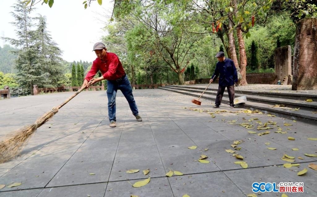 在仁寿县虞丞乡的丞相墓内,宋克成父子俩正在清扫墓园。
