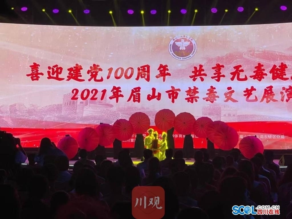 四川在线消息(眉山频道 曾永丽)为进一步深化全民禁毒宣传,广泛动员人民群众参与禁毒斗争,6月24日,“喜迎建党100周年,共享无毒健康人生”2021年眉山市禁毒文艺展演活动在眉山市东坡城市湿地公园举办。眉山市委副秘书长、市禁毒委副主任陈行出席活动并致辞。