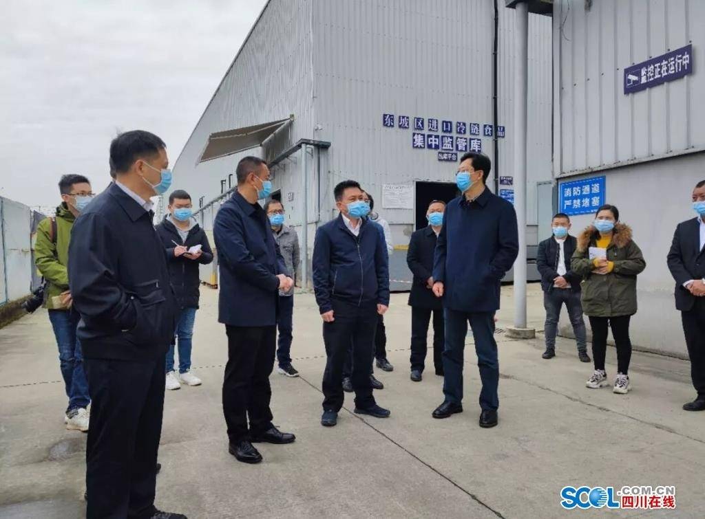 在东坡区进口冷链食品集中监管仓,万鹏龙详细了解监管仓市域分布、冷链食品进出仓数量、工作流程、运营成本等,特别是在企业人员管理、环境及货物消毒、市场监管部门职责落实等方面的情况。
