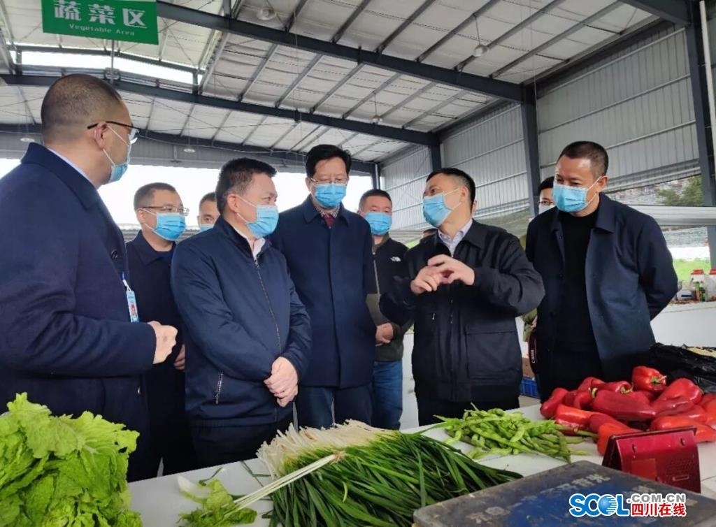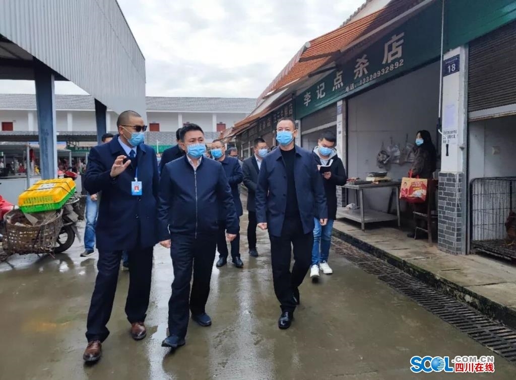在东坡区象耳镇农贸市场,万鹏龙分别听取镇政府主要负责人、社区书记关于农贸市场疫情防控、食品安全责任落实情况介绍,检查农贸市场入口进出人员测温扫码、口罩佩戴等疫情防控落实情况,仔细查看猪肉及禽类摊点检验检疫证明、蔬菜摊点索证索票执行情况、卤制品经营者健康证,与市场业主交谈,深入了解政府职能部门基层一线日常监管执法落实情况,并仔细询问市场监管所的建设和监管情况。