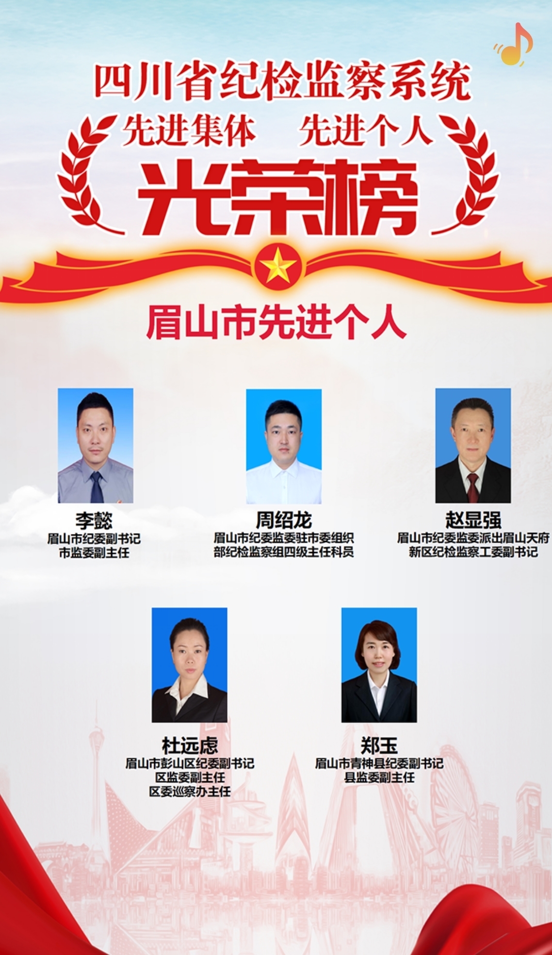 四川在线消息(眉山频道 白杨)4月21日,廉洁四川官微发布四川省纪检监察系统先进集体、先进个人光荣榜。其中,眉山2个集体、5名个人上榜该名单。