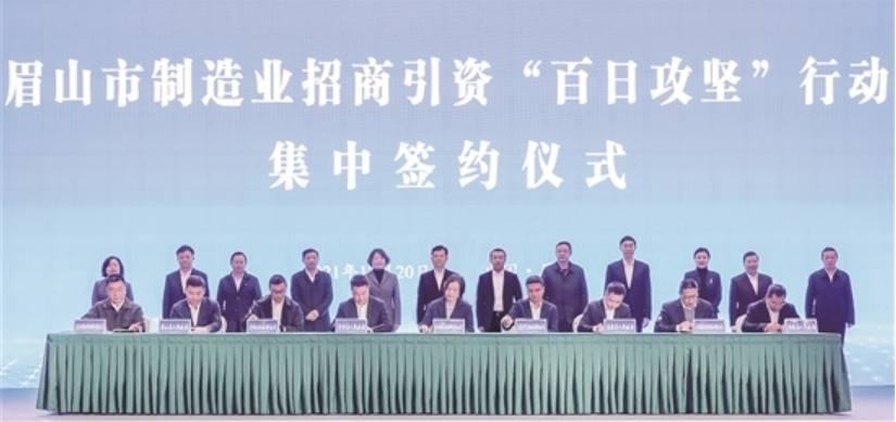 12月20日,眉山市制造业招商引资“百日攻坚”行动集中签约仪式举行。(雷同 摄)