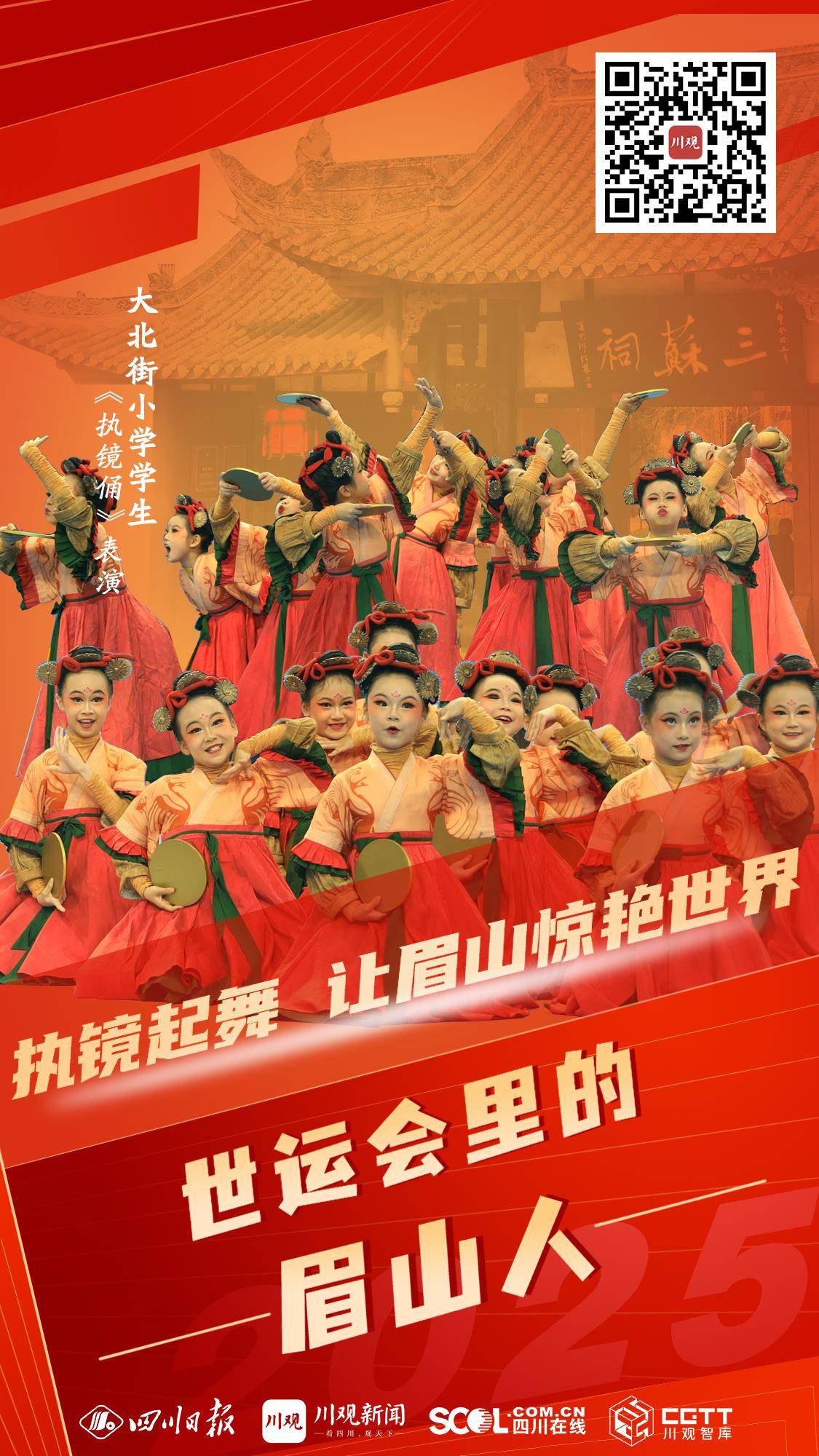 成都世运会赛事期间,20名来自眉山东坡区大北街小学的孩子化身为可爱的“陶俑娃娃”,用灵动的表情和肢体语言演出舞蹈《执镜俑》,展示东坡学子的风采,向世界传播巴蜀文化。