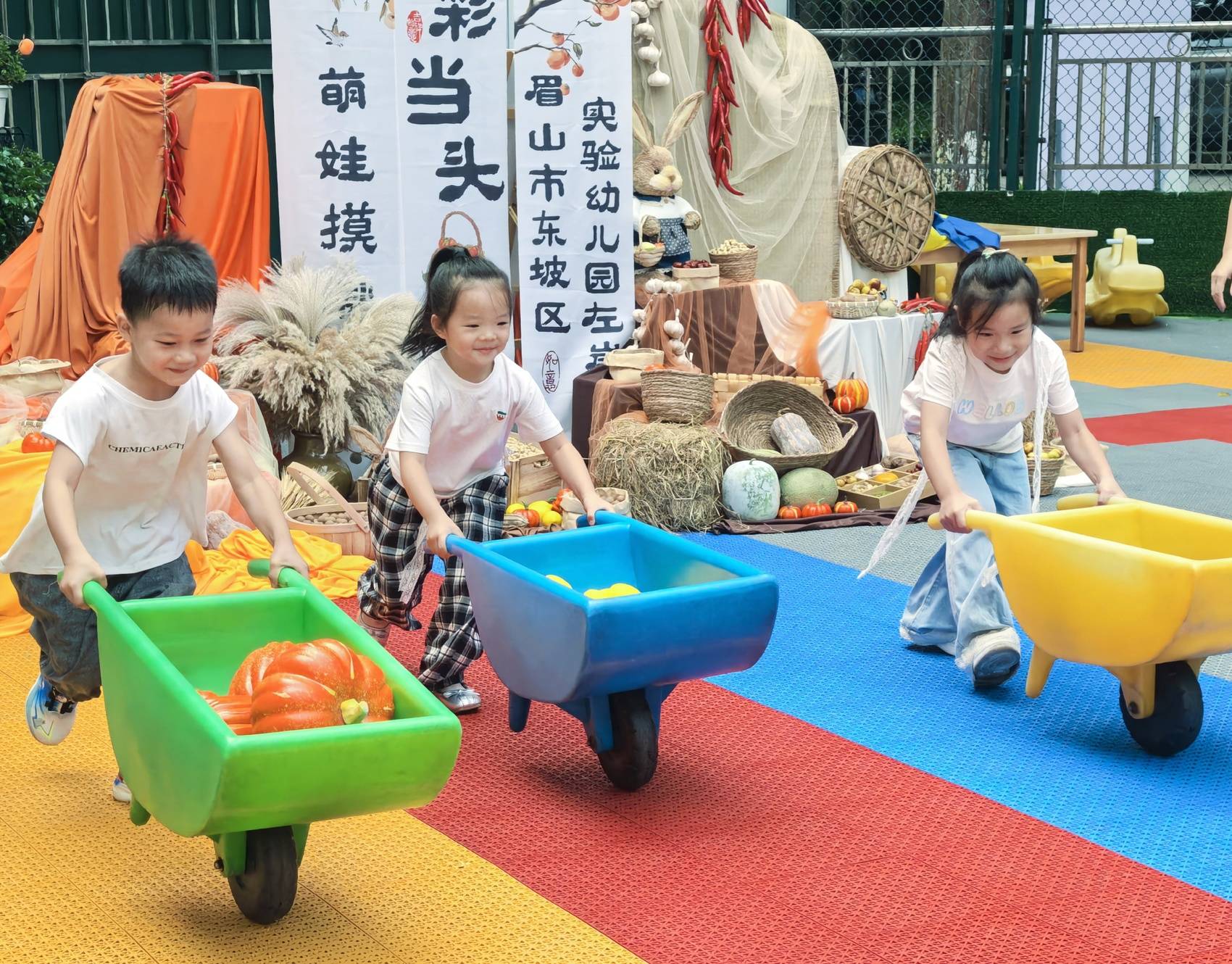 东坡区实验幼儿园左岸分园以“咔嚓!秋日丰收盲盒·萌娃开学大吉”为主题,也举办了温馨活泼的开学典礼。活动上,孩子们通过“投个好意头”“摸意头”等趣味游戏,在投掷平安苹果、触摸吉祥蔬果等互动中感受秋天丰收的美好寓意,在欢乐中融入新学期的集体生活。