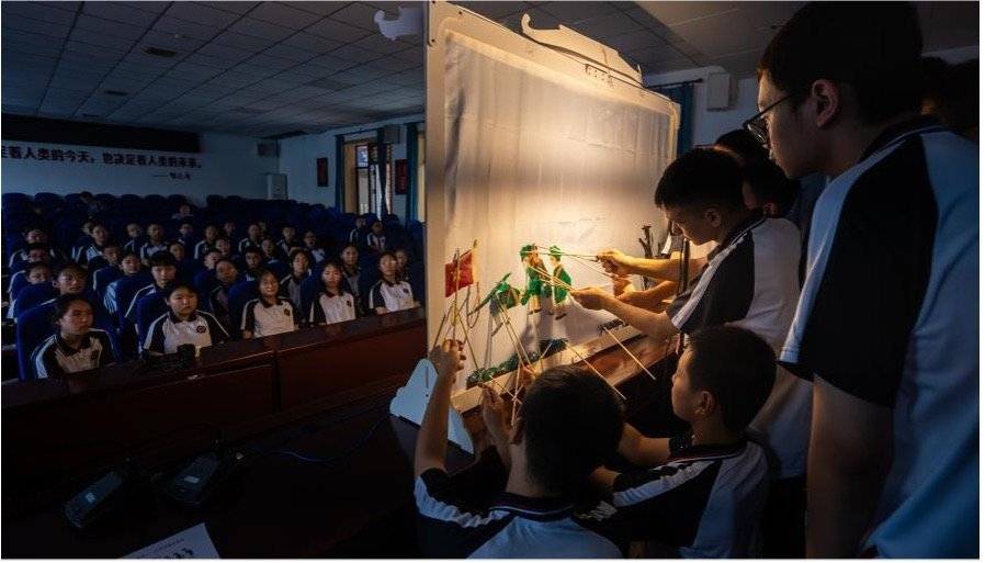 在彭山区第三中学,一堂别具特色的“开学第一课”正在上演——学生们用传统皮影艺术,演绎动人的抗战故事。