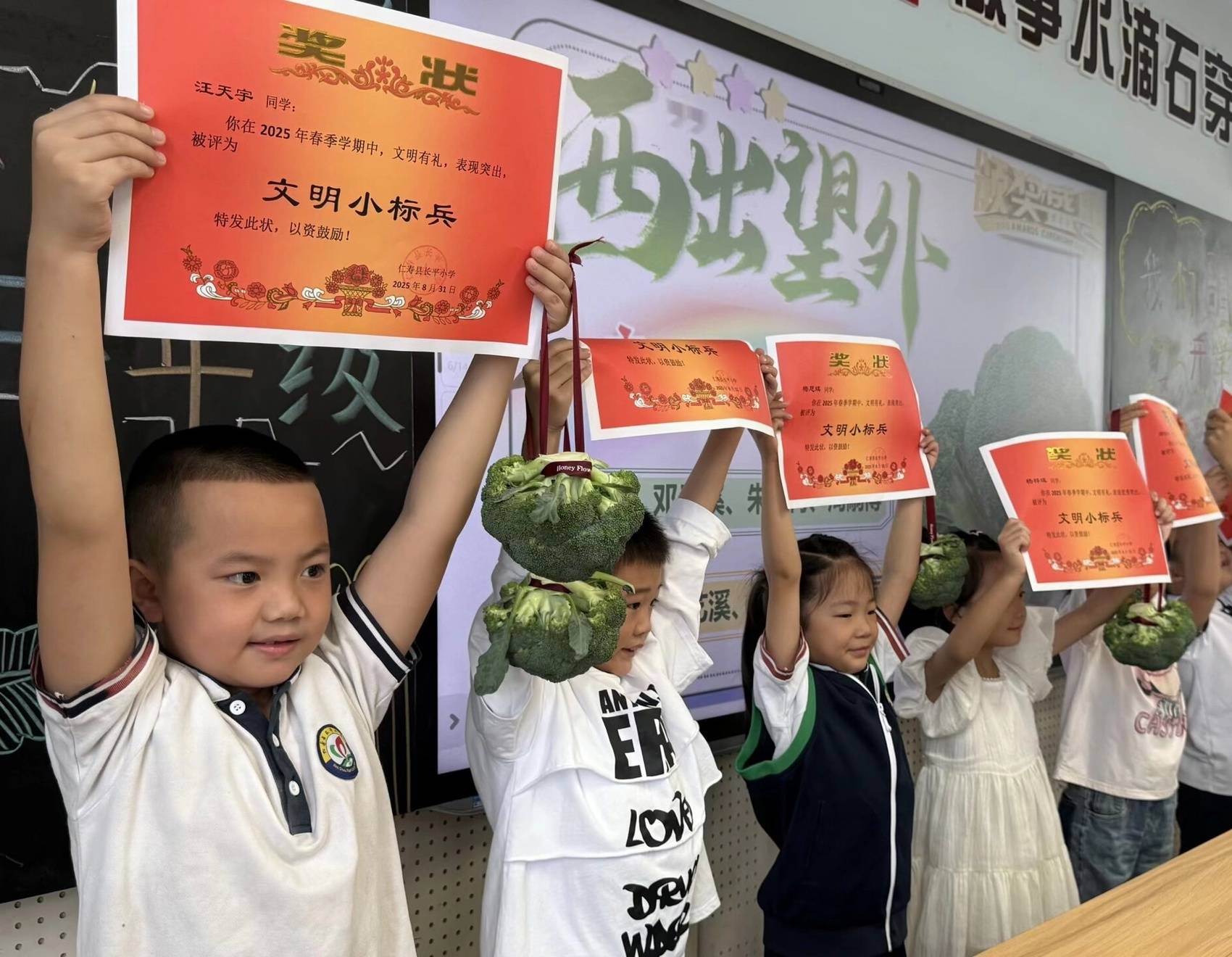 更有趣的是,每个奖项除了有奖状外,还搭配了相应的实物奖励。获得“土”飞猛进奖的同学收到一个土豆;环保小卫士获得一捆芹菜,表扬他们勤劳踏实;全能小学霸则拿到一块牛肉,寓意“属你最牛”;优秀班干部还有一份五花肉,为他们“锦上添花”。