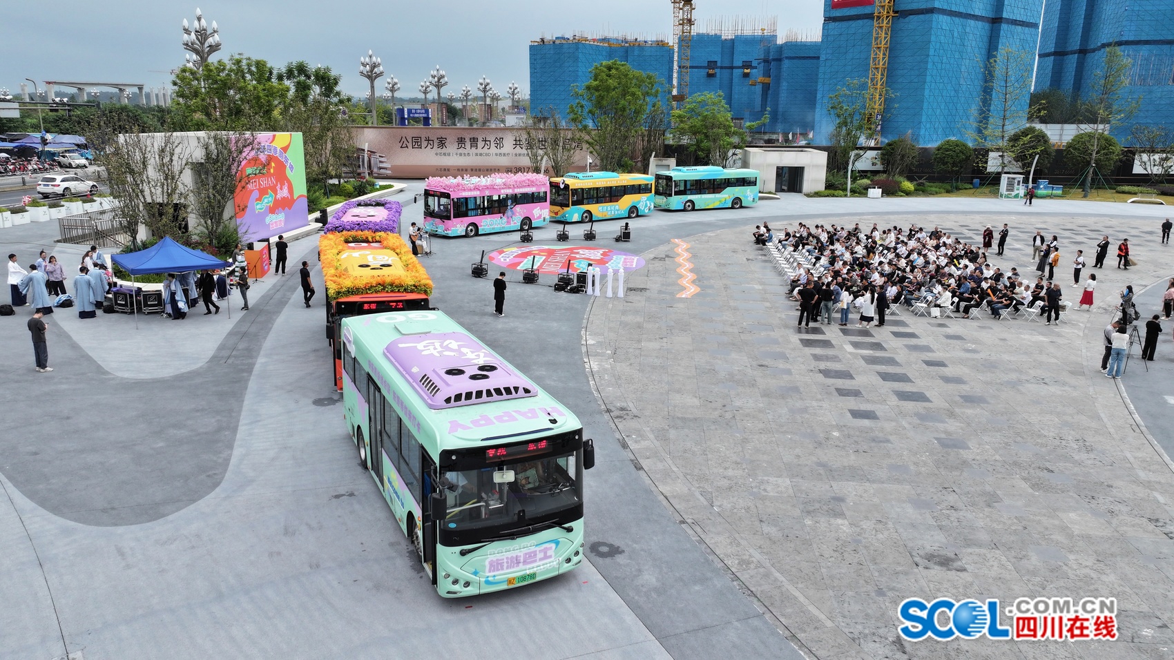 线路配备了6辆巴士,各具主题特色。“文脉寻踪号”绘有巍峨的远景楼与清幽的三苏祠,引领乘客开启东坡文化探寻之旅。“浪漫交响号”车身被蓝花楹花海包裹,营造出梦幻浪漫的乘坐氛围。“活力奔腾号”车身设计彰显东坡马拉松精神,传递健康、拼搏的城市活力。“甜梦奇遇号”采用马卡龙色系拼接,造型活泼可爱。“味蕾风暴号”印有东坡肘子、东坡大米等美食图案。“少年东坡号”则以少年苏轼故事为主题,适合亲子家庭感受文化熏陶。