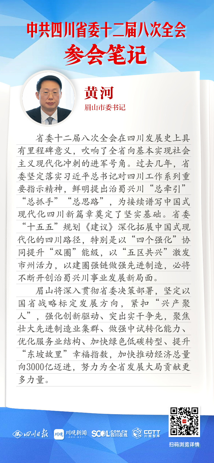 一、全会参会笔记:眉山市委书记黄河:创新驱动 实干争先 奋力建设现代化都市圈高质量发展新兴城市
