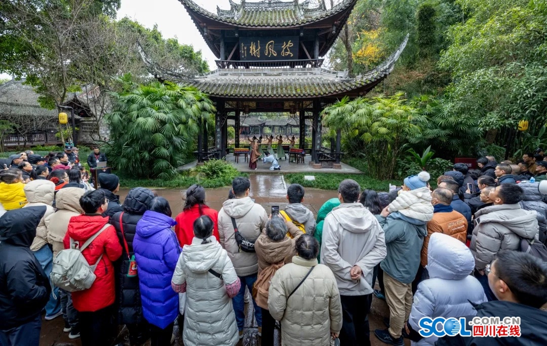 14:00至15:00,曾于元旦首演广受好评的沉浸式实景快闪剧《月映东坡・梦回眉州》将在三苏祠祠堂区回归,以祠堂实景为舞台,将东坡文化融入演绎,让观众在移步换景间穿越千年眉州风雅。
