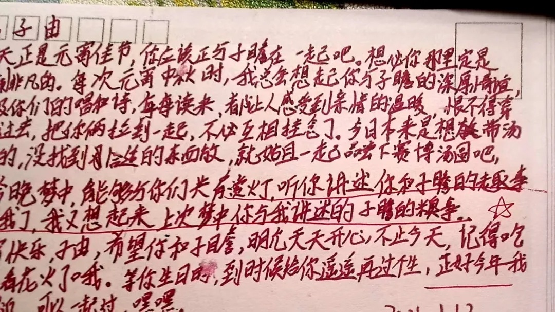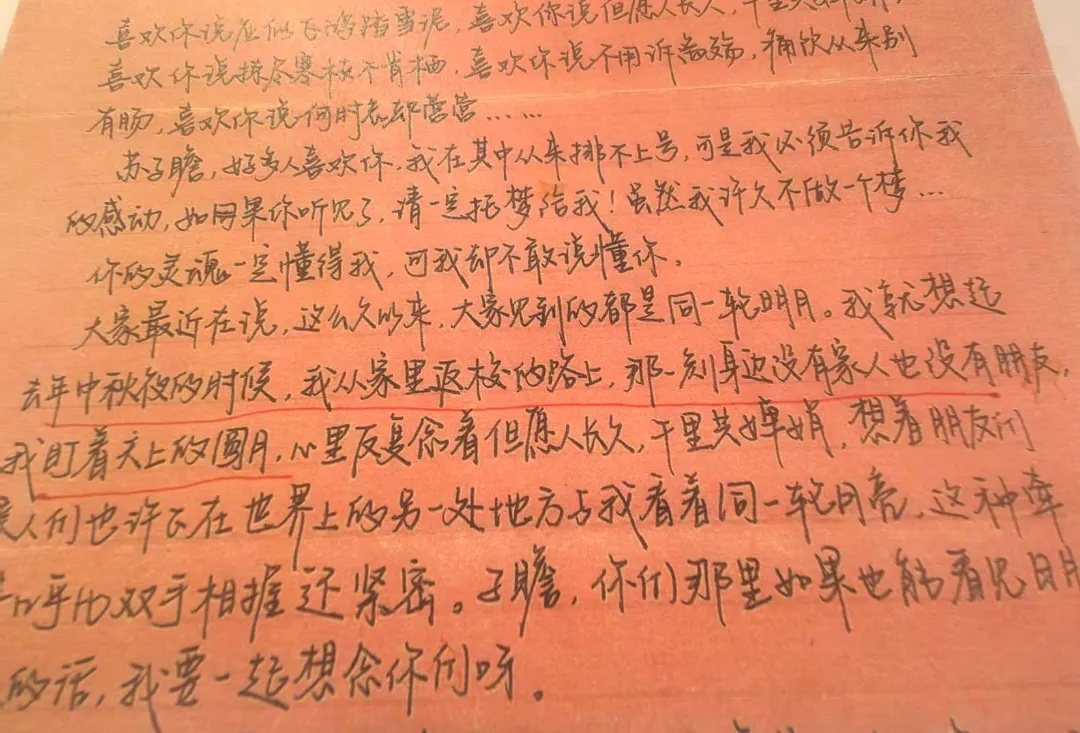 “去年中秋夜,我从家返校,那一刻身边没有家人也没有朋友,我盯着天上的圆月。想着家人,想着你们。”