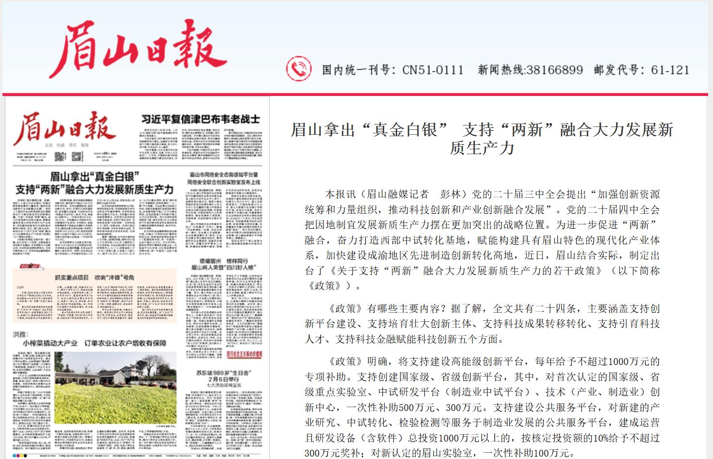 向新求质,眉山端出鼓励科技创新“真金白银”24条